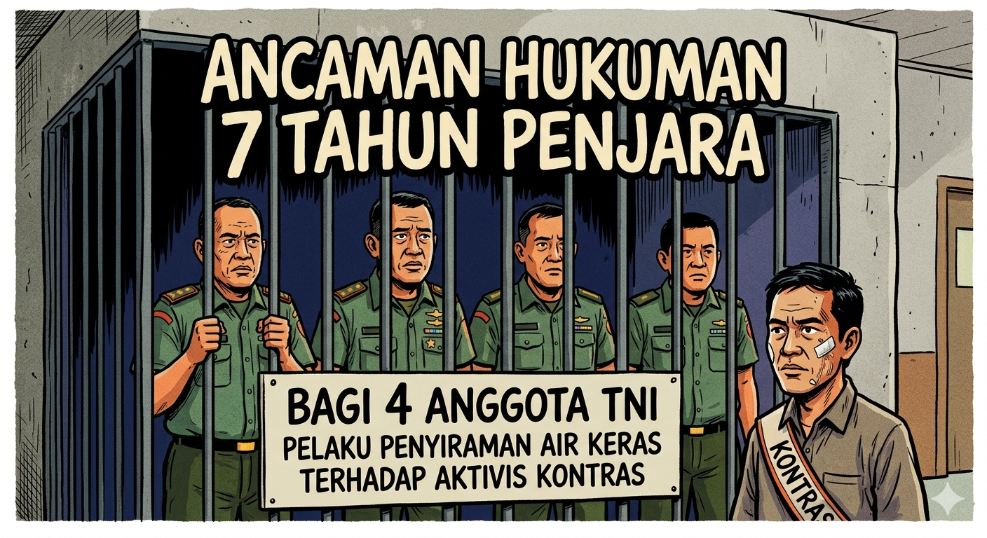 PravadaNews – Pusat Polisi Militer (Puspom) TNI menyebut empat anggota TNI aktif yang menjadi tersangka penyiraman air keras terhadap aktivis Hak Asasi Manusia (HAM) Andrie Yunus terancam 7 tahun penjara.
