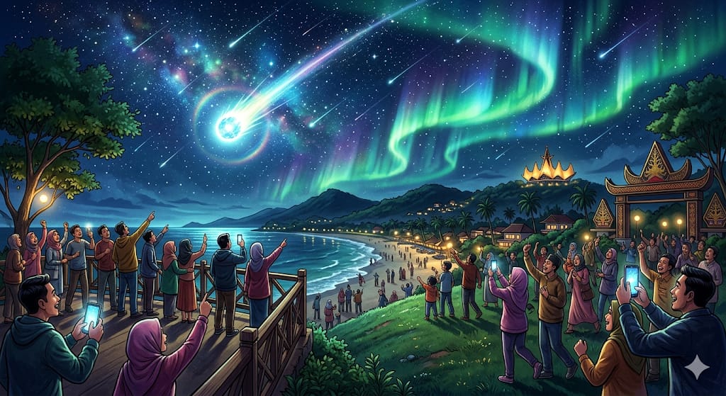 “Masyarakat sekitar Lampung dan Banten dihebohkan dengan objek terang yang meluncur di langit dan tampak terpecah menjadi beberapa bagian. Itu adalah pecahan sampah antariksa,” katanya dikonfirmasi di Jakarta, Minggu (5/4/2026).