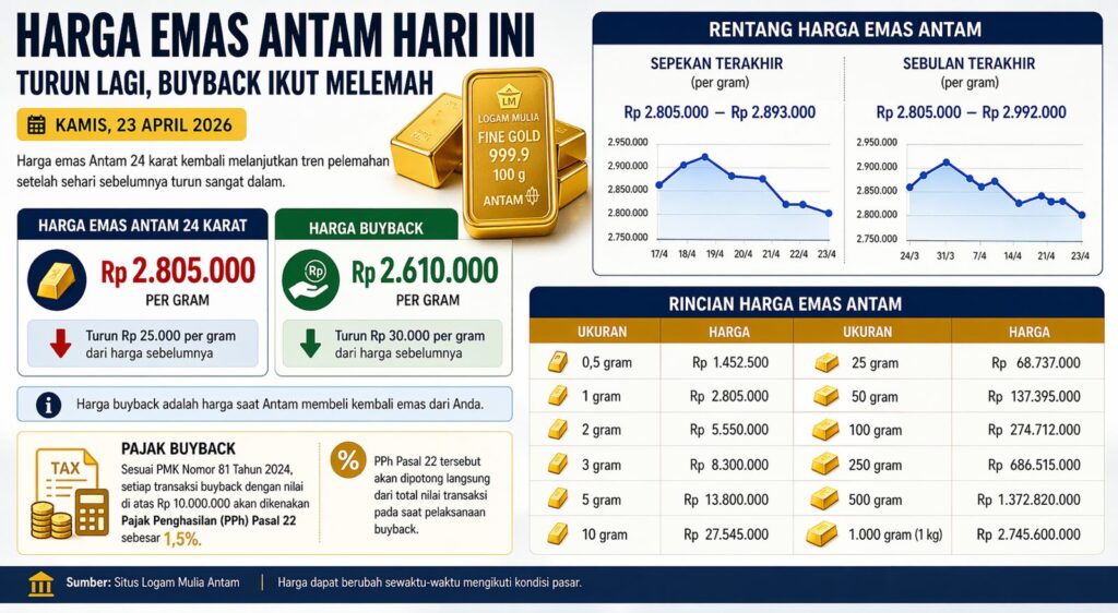 PravadaNews – Harga emas Antam yang dipantau melalui laman resmi Logam Mulia dari Karawang pada Sabtu, bertepatan dengan Hari Raya Idul Fitri 1447 Hijriah pukul 09.11 WIB, tercatat stabil di angka Rp2.893.000 per gram. Stabilitas harga tersebut mencerminkan kondisi pasar emas domesti...