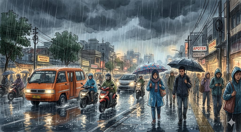 Selain itu, perubahan cuaca yang cukup cepat juga menjadi perhatian, mengingat pada pagi hari beberapa wilayah Jakarta masih berpotensi cerah berawan sebelum akhirnya diguyur hujan pada siang atau sore hari.