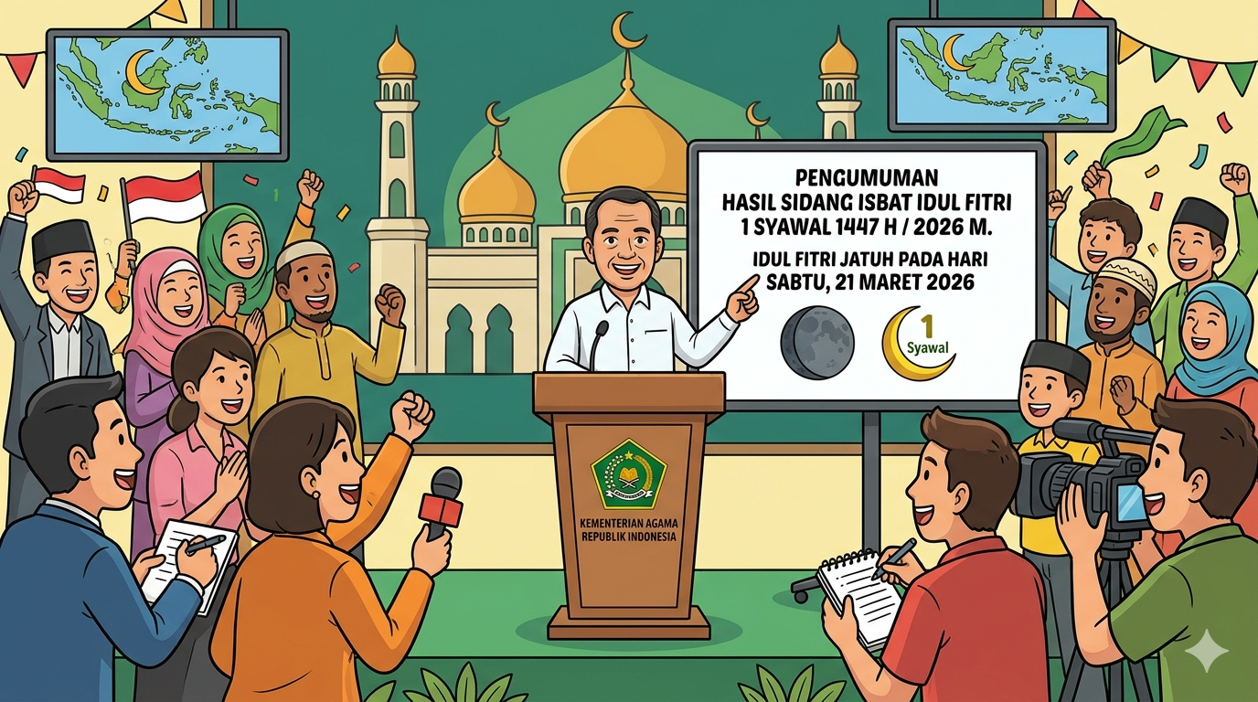 PravadaNews – Pemerintah melalui Kementerian Agama Republik Indonesia (Kemenag RI) resmi menetapkan Hari Raya Idul Fitri 1447 Hijriah jatuh pada Sabtu, 21 Maret 2026.