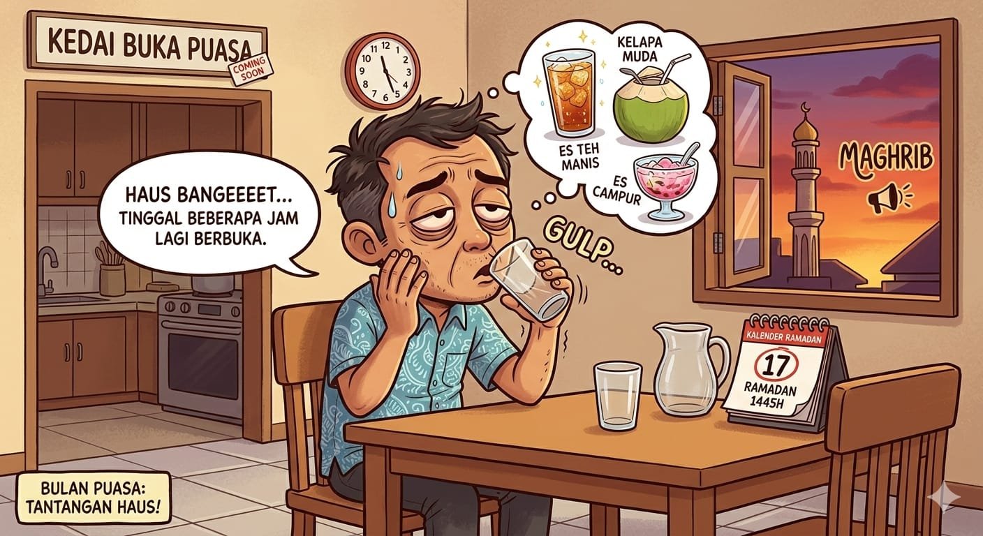 Namun, jika tidak disiasati dengan pola makan dan minum yang tepat, rasa haus dapat menyebabkan tubuh mudah lemas, sulit berkonsentrasi, hingga meningkatkan risiko dehidrasi ringan.