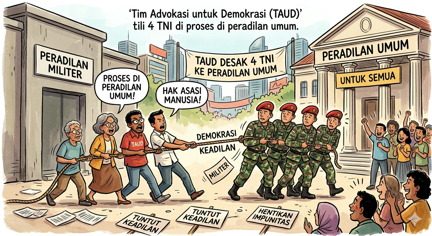 “Ini merupakan tindak pidana umum terhadap warga sipil, sehingga lebih tepat diadili di peradilan umum yang terbuka dan transparan,” sambung Fadhil.