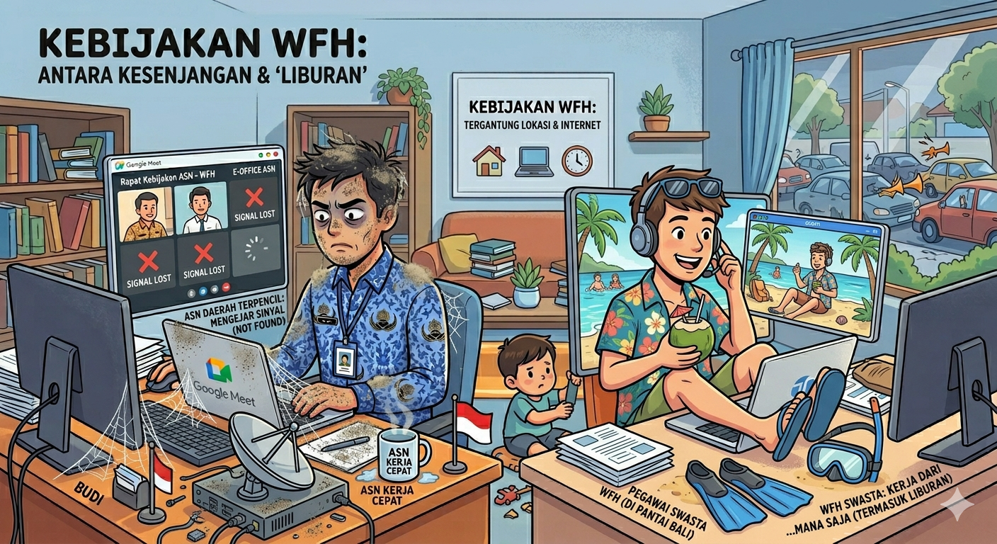 Pandangan Irawan ini menekankan perihal pentingnya keseimbangan antara fleksibilitas kerja dan juga disiplin birokrasi agar digitalisasi pelayanan publik tidak terganggu.