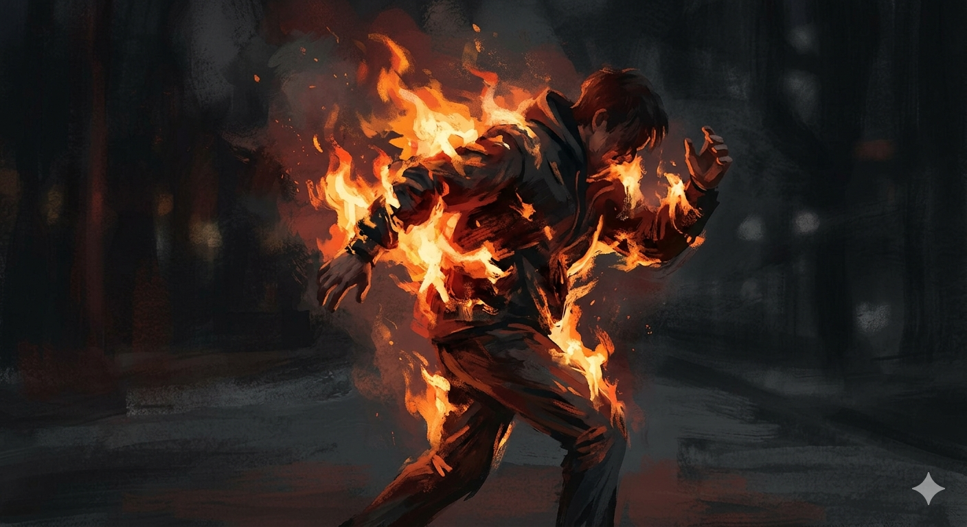 Namun, saat melakukan pengecekan di dalam rumah, saksi mendapati pelaku juga dalam kondisi terbakar.